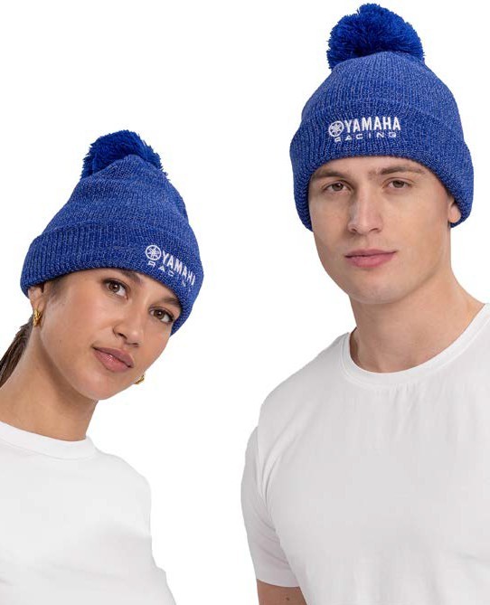 twotone melange knit with embroidered Yamaha Racing logos, it features a bobble for extra style. Stay warm, stay comfy!